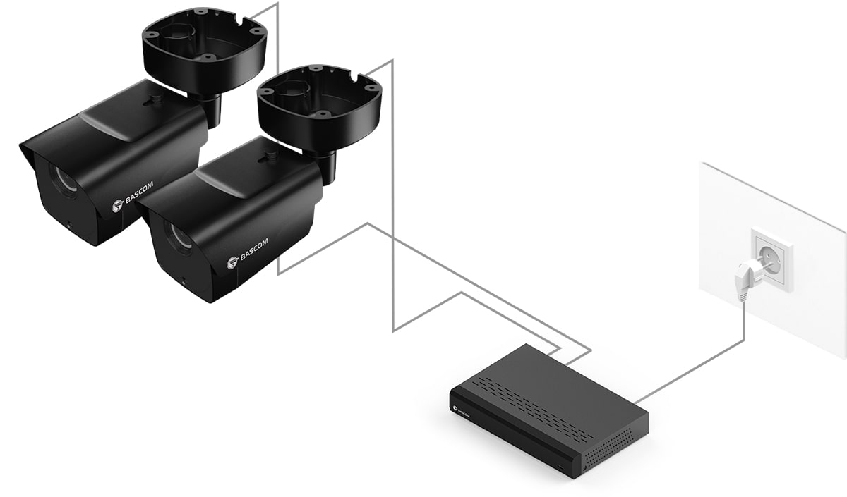 95 % av våra kunder har aldrig tidigare installerat ett kamerasystem, men installerar sitt Bascom-system helt på egen hand. Du skruvar fast kamerorna på väggen eller i taket, ansluter kontakterna, och systemet fungerar direkt.