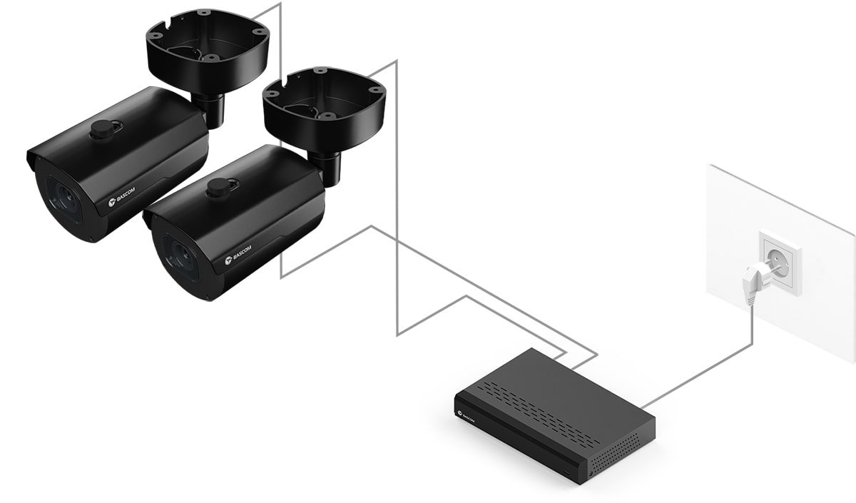95 % av våra kunder har aldrig tidigare installerat ett kamerasystem, men installerar sitt Bascom-system helt på egen hand. Du skruvar fast kamerorna på väggen eller i taket, ansluter kontakterna, och systemet fungerar direkt.