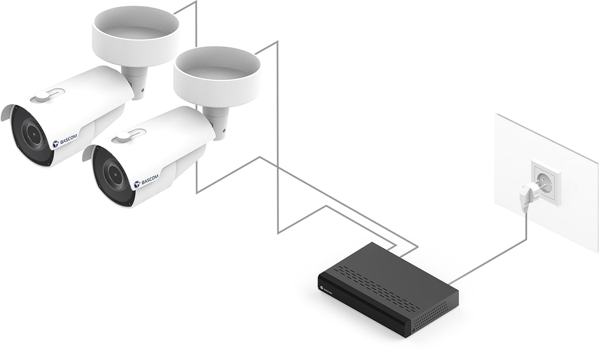 95 % av våra kunder har aldrig tidigare installerat ett kamerasystem, men installerar sitt Bascom-system helt på egen hand. Du skruvar fast kamerorna på väggen eller i taket, ansluter kontakterna, och systemet fungerar direkt.