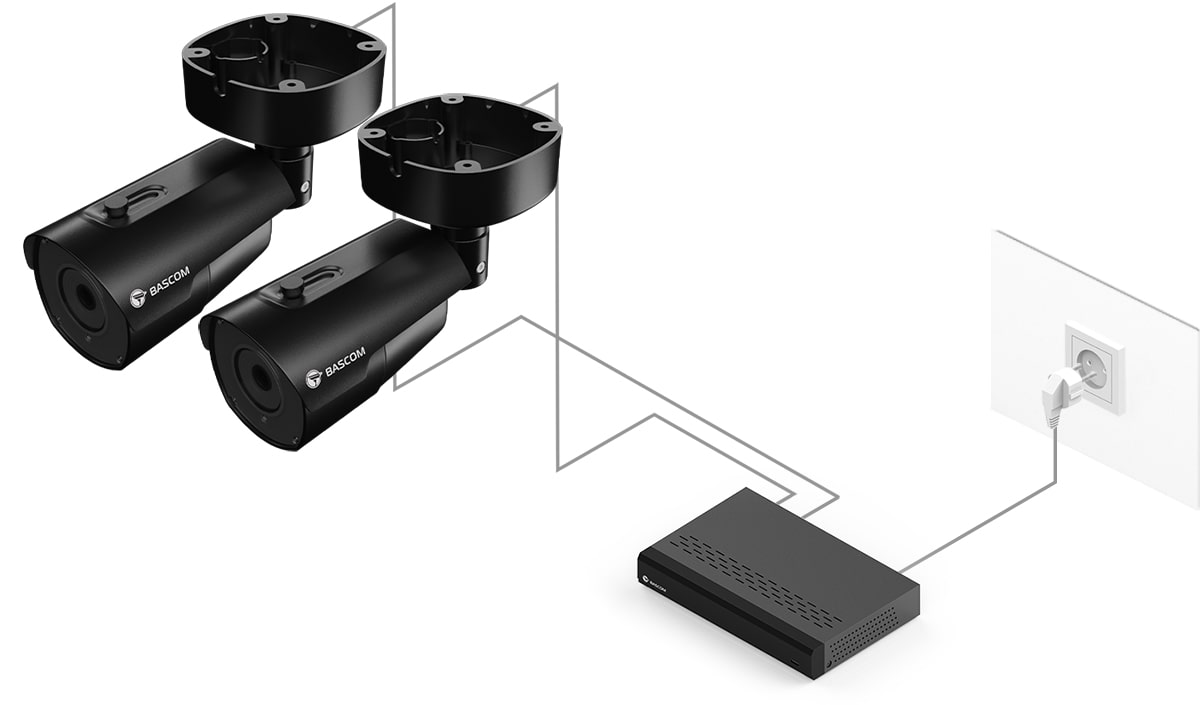 95 % av våra kunder har aldrig tidigare installerat ett kamerasystem, men installerar sitt Bascom-system helt på egen hand. Du skruvar fast kamerorna på väggen eller i taket, ansluter kontakterna, och systemet fungerar direkt.