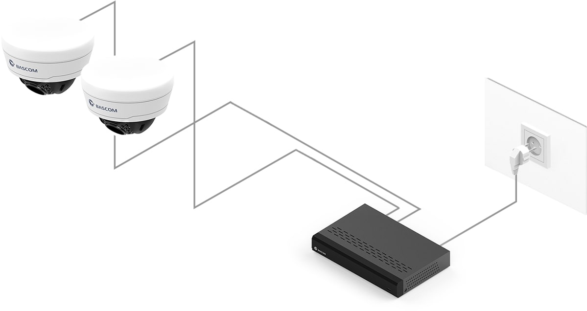 95 % av våra kunder har aldrig tidigare installerat ett kamerasystem, men installerar sitt Bascom-system helt på egen hand. Du skruvar fast kamerorna på väggen eller i taket, ansluter kontakterna, och systemet fungerar direkt.