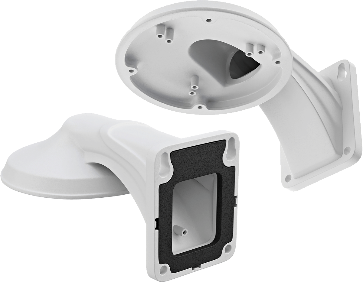 En domekamera kan monteras i taket eller plant mot väggen, och kan riktas bra i båda fallen. Men ibland är det bättre om kameran kommer ut en bit från väggen – till exempel för att se förbi ett stuprör eller annat hinder. Då är ett väggfäste en elegant lösning.